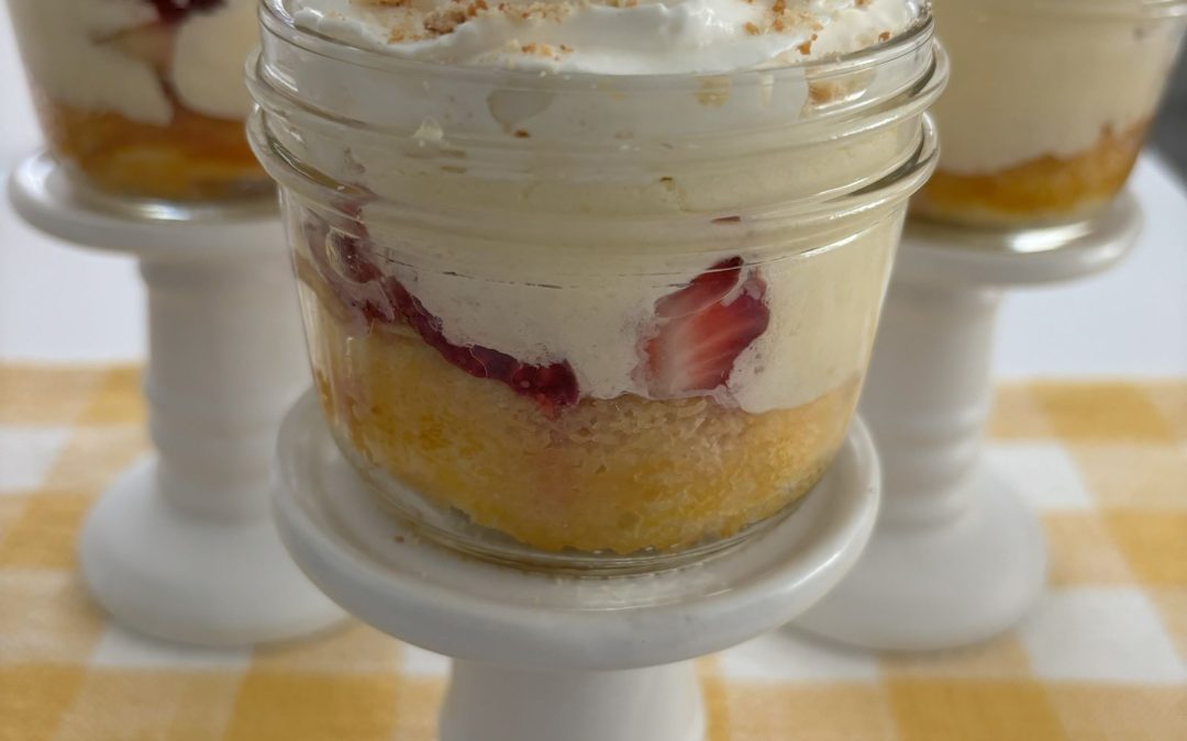 EASY Banana Pudding Cake Jars with Fresh Strawberries